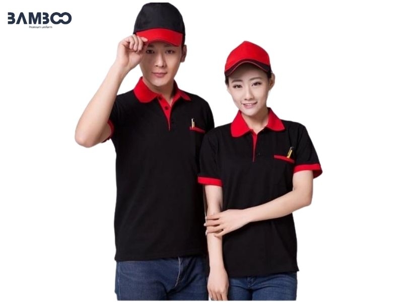 Thiết kế áo thun đồng phục công sở đen phối đỏ cũng là lựa chọn hàng đầu cho những doanh nghiệp muốn khẳng định sự mạnh mẽ, uy tín và chuyên nghiệp. Sự kết hợp giữa tông đen quyền lực và sắc đỏ nhiệt huyết tạo nên hiệu ứng thị giác ấn tượng, mang lại vẻ ngoài sạch sẽ, bền bỉ cho đội ngũ nhân viên trong suốt quá trình làm việc.