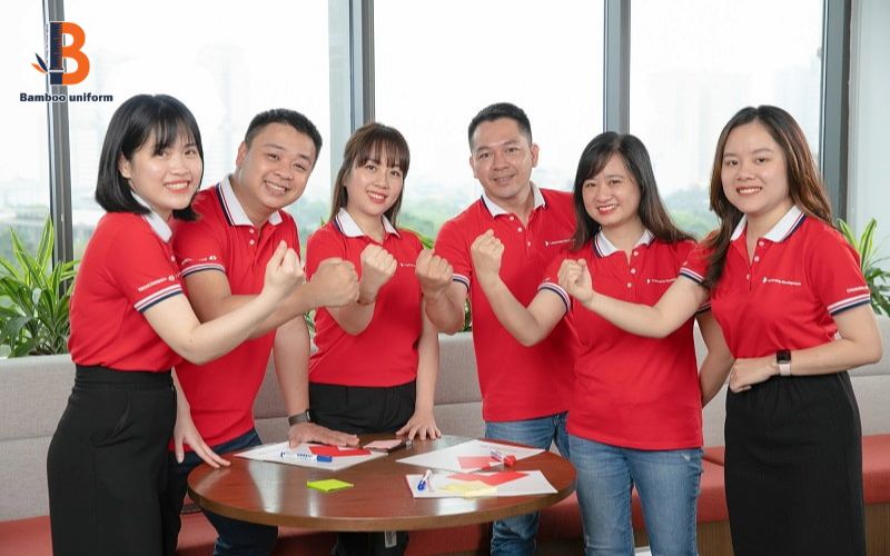 Techcombank sử dụng áo thun đồng phục với tông màu đỏ chủ đạo