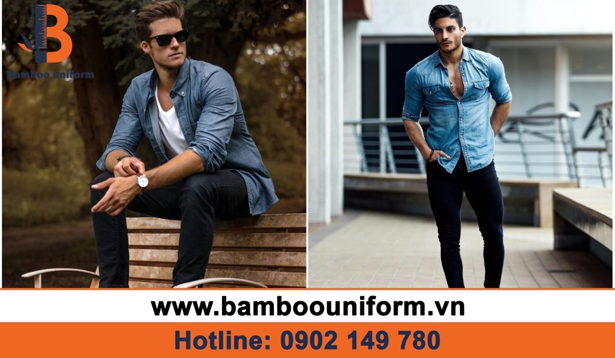 Các bạn yêu thích sự trẻ trung có thể kết hợp sơ mi với quần jean. Đây là kiểu phối năng động, phù hợp khi đi làm trong môi trường sáng tạo hoặc đi chơi cuối tuần. Bạn có thể xắn tay áo và sơ vin nửa chừng để tăng thêm nét cá tính. Giày thể thao trắng hoặc giày lười sẽ tăng thêm chất phóng khoáng và thoải mái. Về phần màu sắc, bạn hãy chọn màu áo sáng hoặc có họa tiết sọc, caro để tạo sự mới lạ.