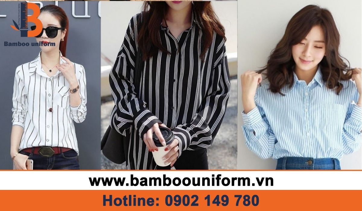 - Áo sơ mi công sở có họa tiết kẻ sọc dọc hoặc kiểu dáng cách điệu: Các bạn nữ muốn tôn dáng, làm nổi bật vẻ ngoài chuyên nghiệp, hiện đại có thể chọn áo có họa tiết.