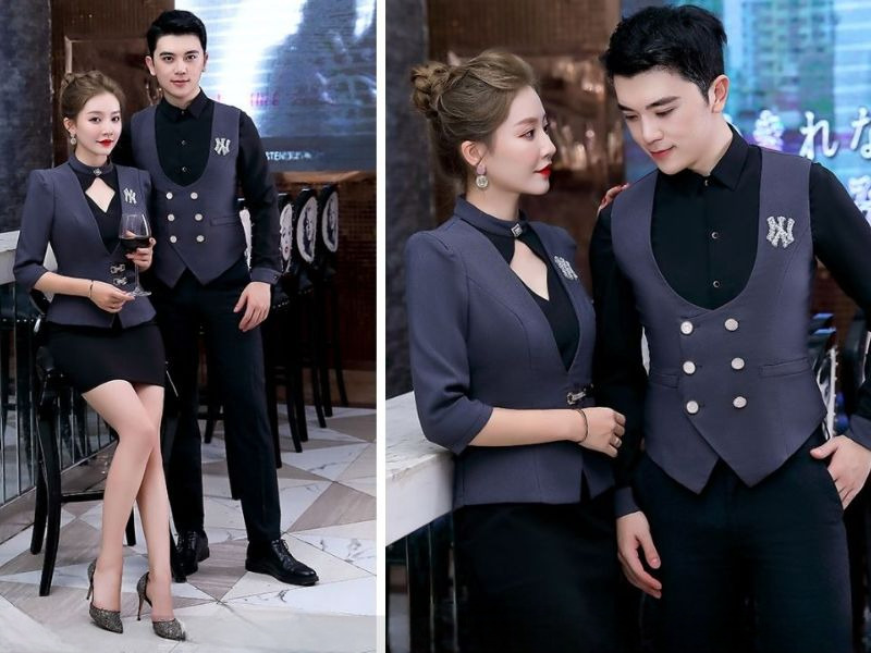 Mẫu đồng phục lễ tân quán bar cần sự thoải mái khi làm việc, phải toát lên phong cách riêng của quán, đồng thời tạo thiện cảm và sự chuyên nghiệp. Dưới đây là hai thiết kế phổ biến được nhiều quán bar lựa chọn: